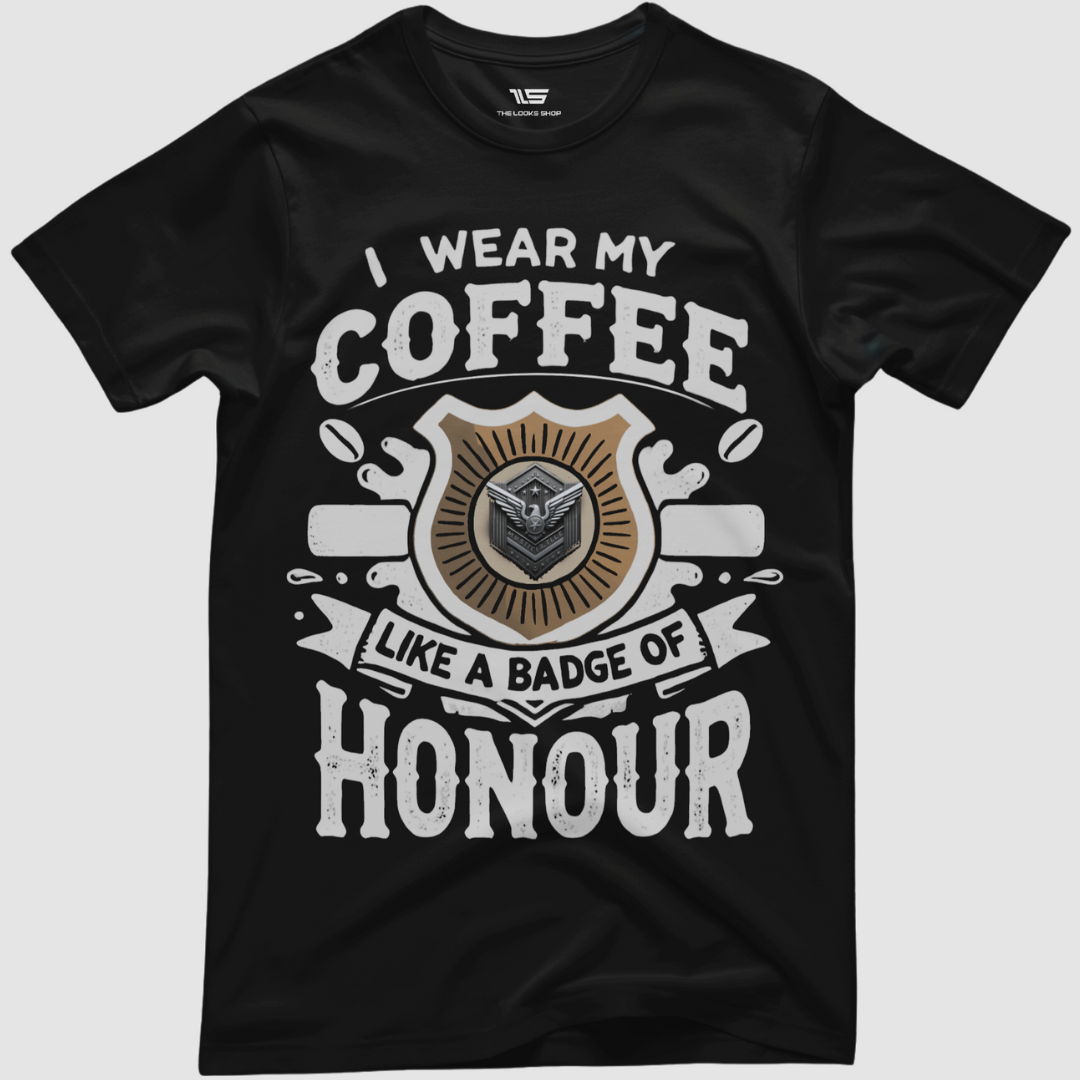 I Wear My Coffee Like A Badge Of Honour - Unisex Classic Crew T-Shirt